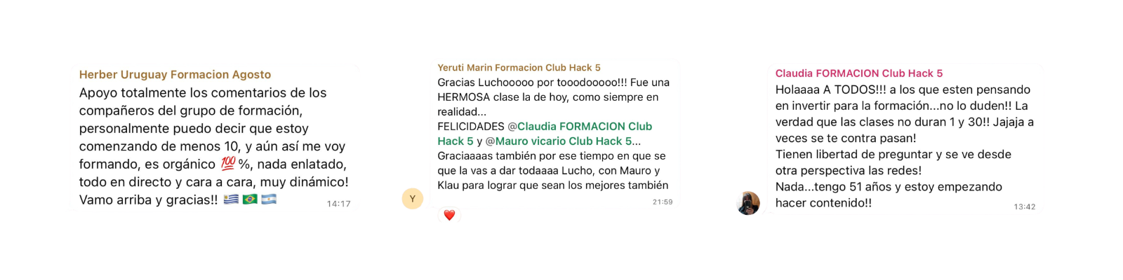 Además, decenas de alumnos ya pasaron por mis formaciones y validan el proceso con resultados concretos en su comunicación y oferta.